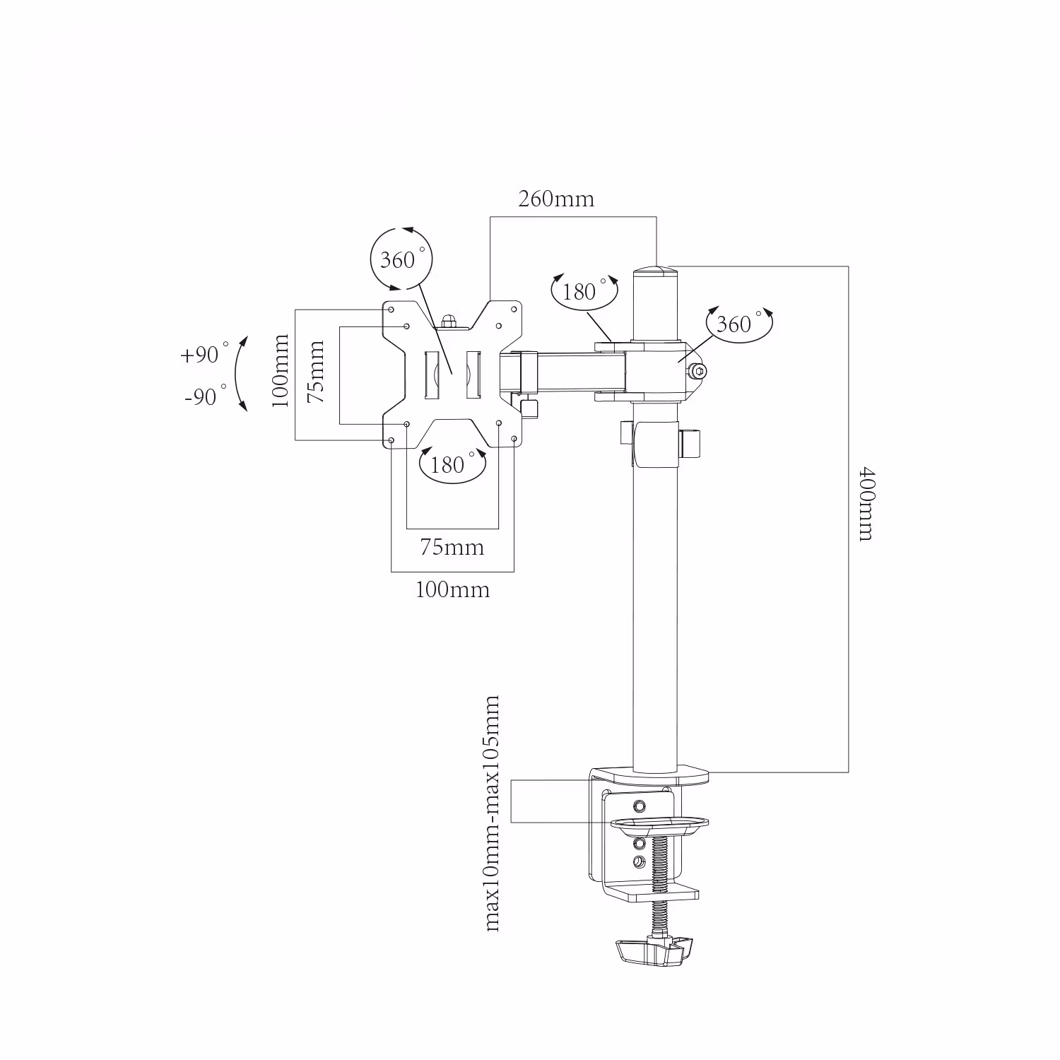 - Tilt: +90° till -90° för optimal betraktningsvinkel