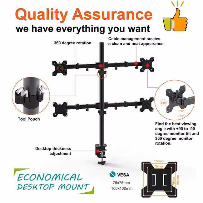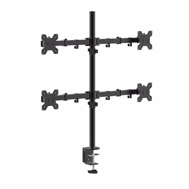 Denna högkvalitativa Charmount skärmhållare för fyra skärmar är tillverkad av slitstarkt kallvalsat stål och stöder flera vinklar och höjdjusteringar, vilket gör den perfekt för kontor, hemmakontor, spel eller designarbete!
