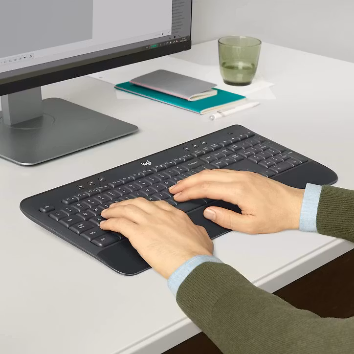 Arbeta med hög komfort tillsammans med Logitech MK545 tangentbord och mus. Med detta tangentbord och mus kommer du kunna öka din produktivitet tack vare den höga komforten. Anslut enkelt tangentbordet och musen till din dator genom en USB-receiver och du är redo att börja jobba.