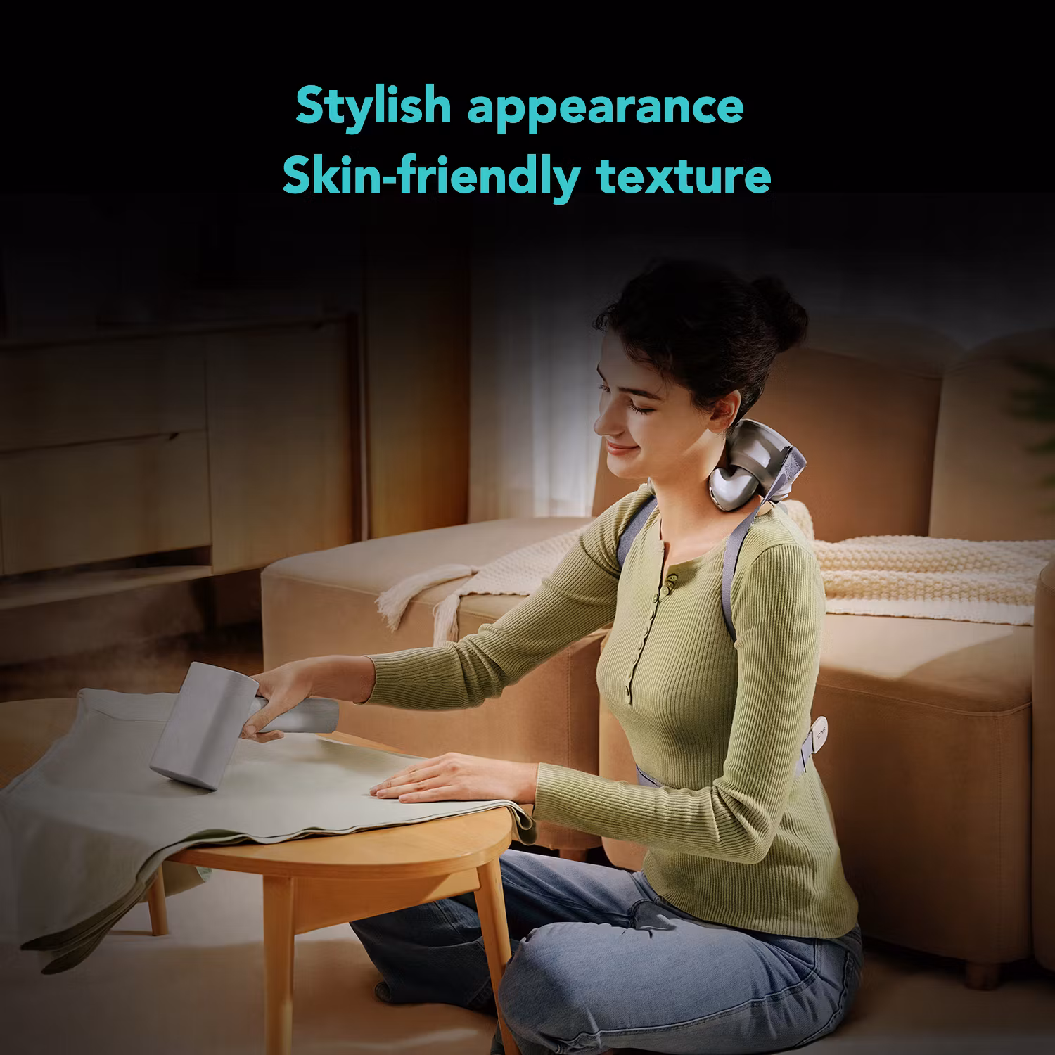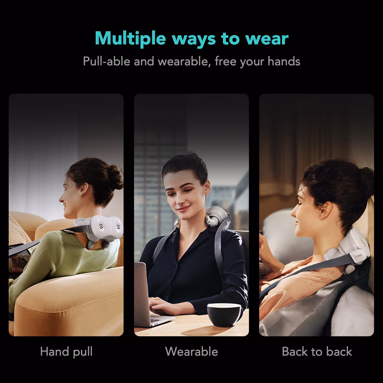 Remmar: Justerbara remmar för att enkelt placera enheten på nacke och axlar.
