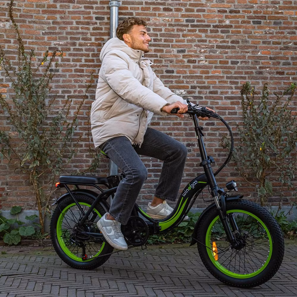 Upplev den ultimata kombinationen av stadspendling och terrängäventyr med Windgoo E20. Denna hopfällbara terräng-elcykel har 20*3.0-tums breda däck, som inte bara är lätta att bära med sig utan även ger utmärkt grepp på alla underlag. Med en kraftfull 250W motor och 450Wh batteri erbjuder den imponerande räckvidd på 70-80 kilometer. Förbli uppkopplad med det smarta appsystemet och njut av en topphastighet på 25 km/h. Lås upp äventyrets värld nu.
